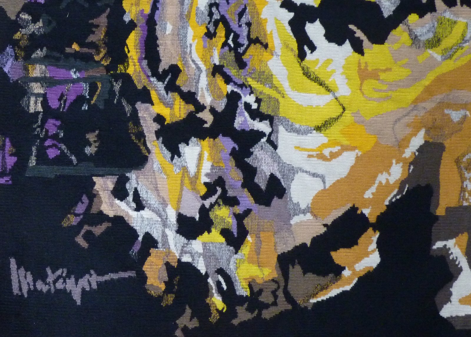 Matégot, first a decorator, then a creator of objects and furniture (an activity he renounced in 1959), met François Tabard in 1945, and gave him his first cartoons, initially figurative, then soon abstract, from the 1950s onwards. He became a member of the A.P.C.T. (Association of Painters-Cartoonists of Tapestry) in 1949, participated in numerous international exhibitions (Matégot, like Lurçat before him, was an indefatigable advocate of tapestry), responded to numerous public commissions, sometimes monumental ("Rouen", 85 m2 for the prefecture of Seine-Maritime, but also tapestries for Orly, for the Maison de la Radio, for the IMF...) and produced no less than 629 cartoons until the 1970s. In 1990, the Matégot Foundation for contemporary tapestry was inaugurated in Bethesda, United States. Matégot was part, with other artists like Wogensky, Tourlière or Prassinos, of those who resolutely oriented wool towards abstraction, lyrical at first, geometric in the 1970s, exploiting different technical aspects of the craft: gradations, beatings, stitched, pointillist..