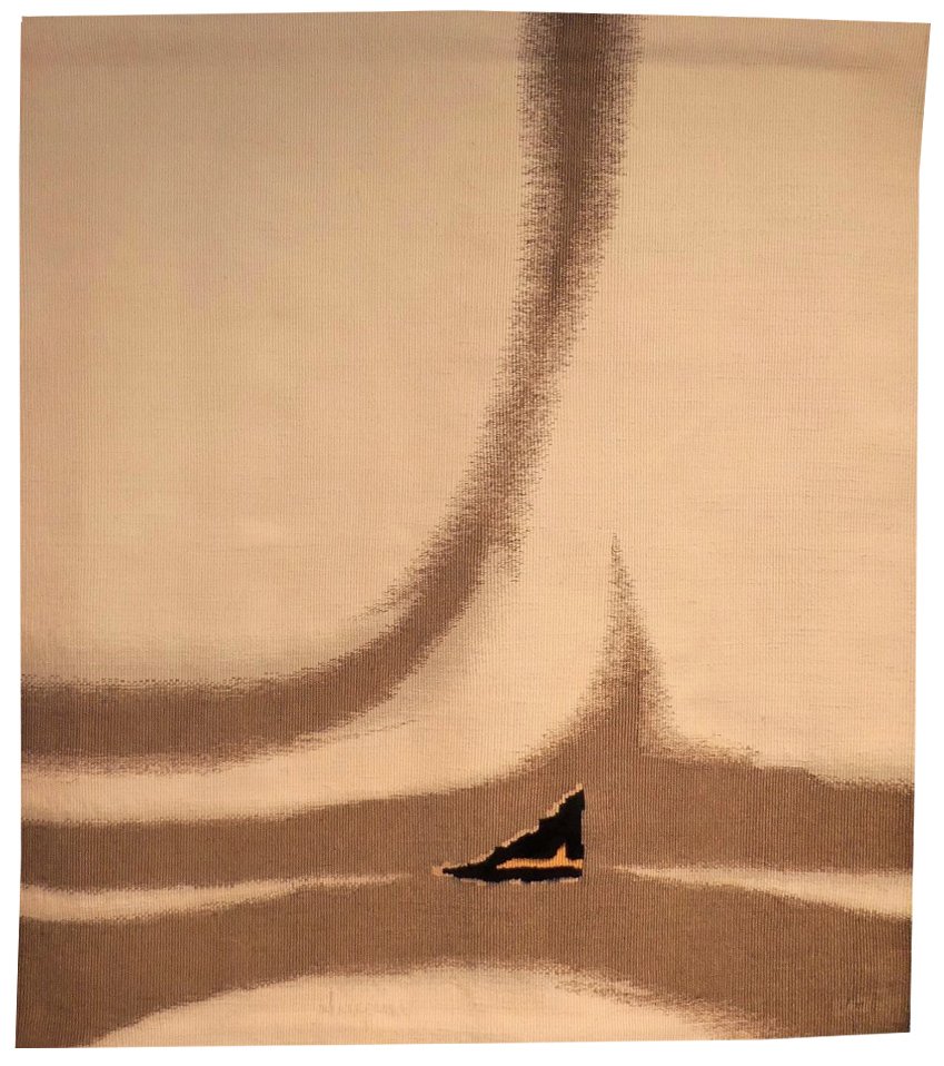 “Aeolian Call” is a cartoon from before the break and radicality: abstract, with large dots, with metal threads, but still presenting the appearance of a traditional tapestry.